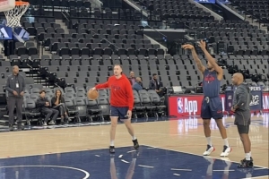 据快船随队记者Tomer Azarly报道,快船伦纳德赛前来到了场上进行热身。