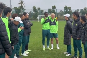 目前国安正在海口冬训,备战新赛季的各项赛事。在今天训练结束前,国安全队为张稀哲庆祝生日,外援法比奥扮演“主持人”,其他球员分成两列,张稀哲从队友们中间穿过,氛围欢乐。