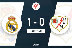 半场-皇马暂1-0巴列卡诺 维尼修斯破门终结联赛13轮球荒贝林伤退