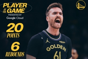 赛后勇士官方发布本场最佳球员数据海报,斯潘塞当选。