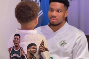 赛后,字母哥带着他的儿子们向喜欢的球星索要签名,他对儿子说道:“要努力训练,这样你们以后就能够对阵文班亚马了。”
