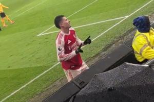 阿森纳2-2狼队,马丁内利面对狼队球迷挑衅时回应“2-1”的手势,但此后枪手遭狼队绝平。