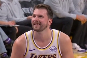GIF-首节东契奇造了前队友布伦森一个犯规,咧嘴笑了