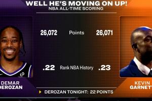 排在德罗赞身前的为斯蒂芬·库里(截至今日为26257分),再往前一位是约翰·哈弗里切克(26395分)。