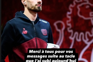 泰里耶社媒报平安,他写道:“感谢大家在我今天对阵拜仁的比赛中被铲球后发来的关心问候,我目前感觉良好,伤势没有大碍。”