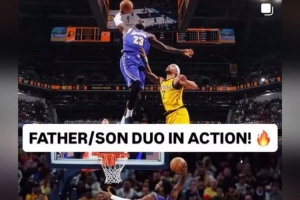 赛后詹姆斯更新了个人社媒,晒出自己和布朗尼同场扣篮帅照。配文写道:“上阵父子兵!🔥”