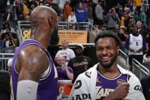 体育资讯3月27日讯 在昨日湖人137-130客场击败步行者的比赛中,湖人球星詹姆斯与儿子布朗尼一同出场。赛后。詹姆斯接受了The Athletic湖人随队记者 DanWoike的独家采访。