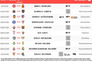 体育资讯4月16日讯 西甲第34轮比赛开球时间出炉,5月3日3点奥萨苏纳vs巴萨,5月4日3点西班牙人vs皇马。