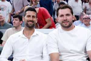 体育资讯4月17日讯 今日,皇家马德里篮球队官推晒出一张图片,湖人球星东契奇与与网坛球星德约科维嘉一同在马德里现场观看皇家马德里与贝尔格莱德红星之间的欧冠篮球常规赛对决。
