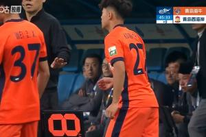 青岛德比第46分钟,17岁邝兆镭替补登场,迎来个人中超生涯第二次出场>>