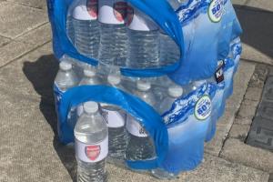 体育资讯04月19日讯 据记者James Olley报道,有曼城球迷在阿提哈德球场外售卖贴有阿森纳队徽的矿泉水,售价2镑一瓶。